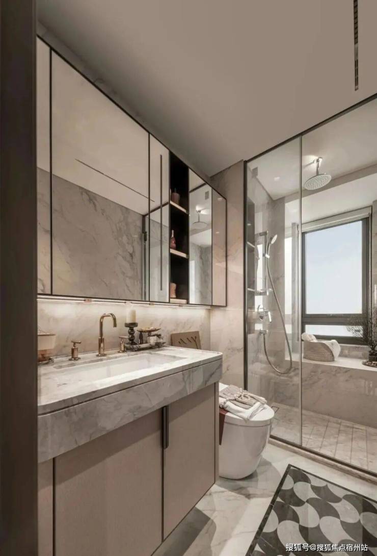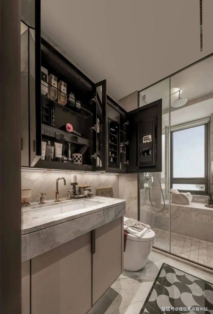 又如卫生间干湿分离,镜柜自带置物架与美妆冰箱,护肤品有序冷藏,晨起焕新更显精致。可以说,这套户型用隐形收纳艺术,成为百平内功能型三房的优选!