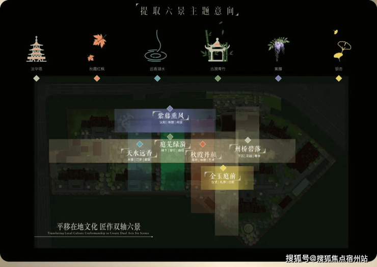 社区内布局 “礼序归家轴+景观漫步轴”纵横交织的 双轴景观动线,将州桥老街、秋霞圃、远香湖、古猗园、紫藤园、银杏古树等嘉定六景提炼、转译,形成了 具有在地文化特色的六大景观主题空间!并以此形成 整体约300米的景观纵深,未来将呈现出一个超大的中央公园。