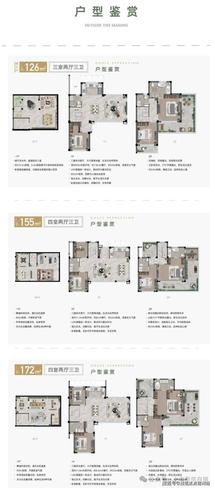 建面约126㎡、155㎡、172㎡合院