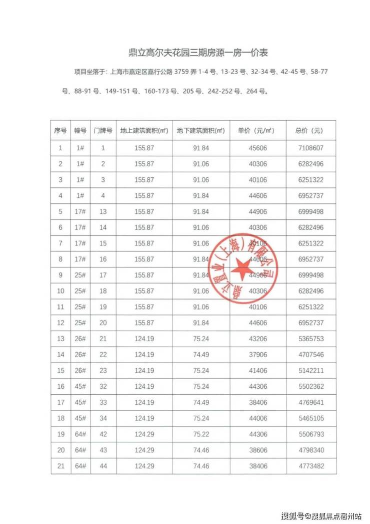 最新一房一价表: