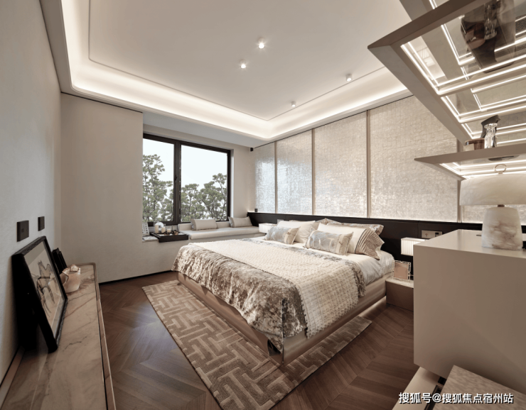 景观的 “私有化”: 主卧270°转角飘窗正对着下沉式庭院,景观视野极佳。清晨被鸟鸣唤醒,傍晚看夕阳穿过树叶的光影,这种 “把公园搬进家” 的体验,在135㎡的户型中就能实现,这正是其 “质价比之王” 的底气。