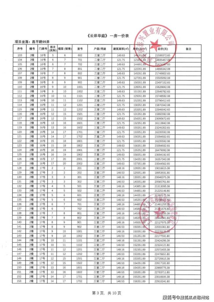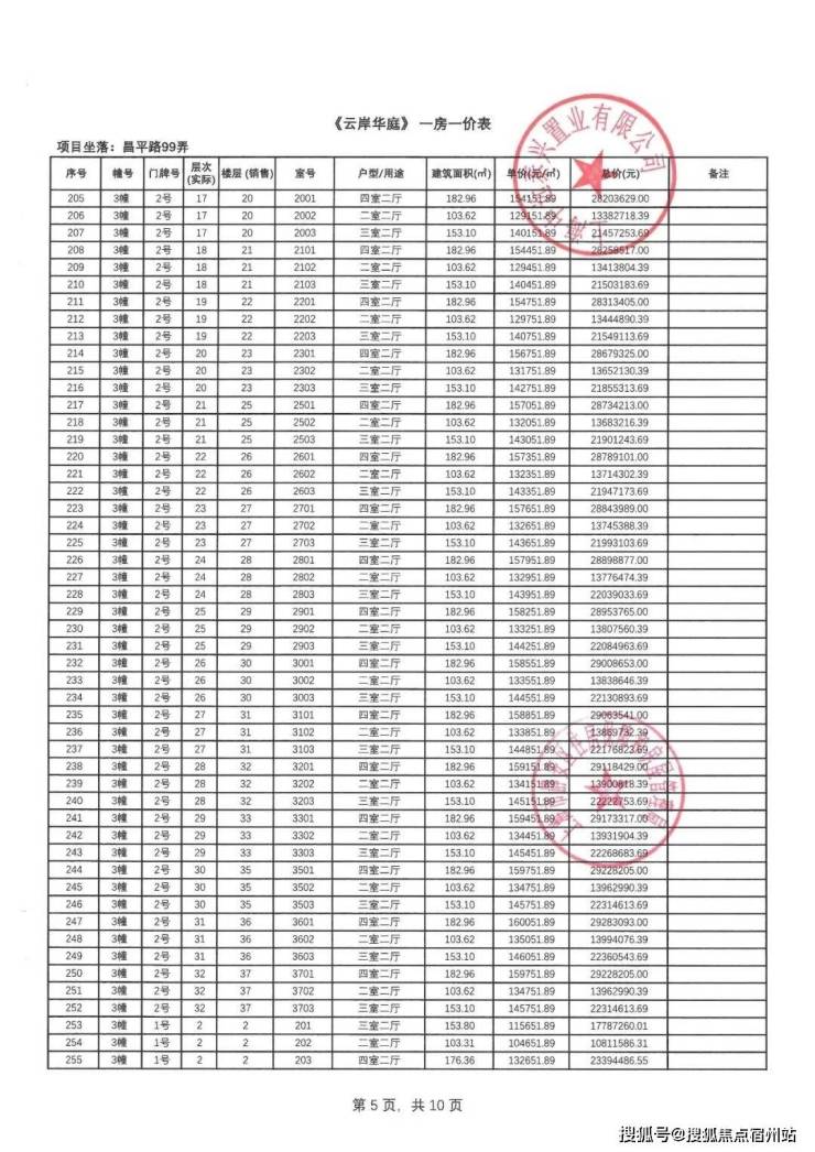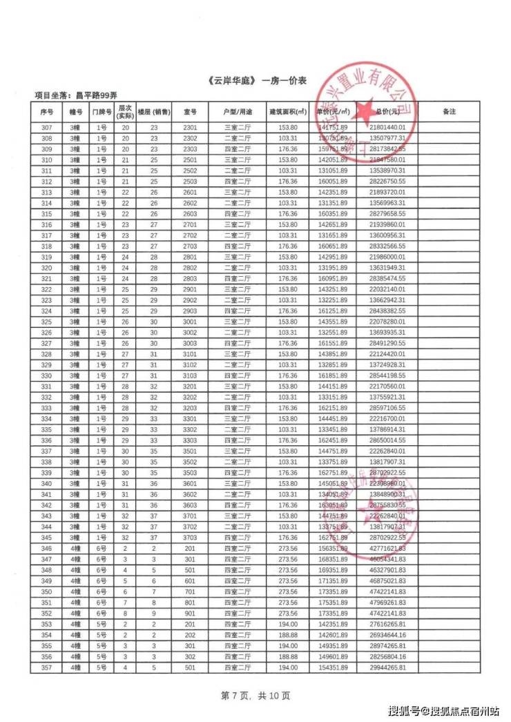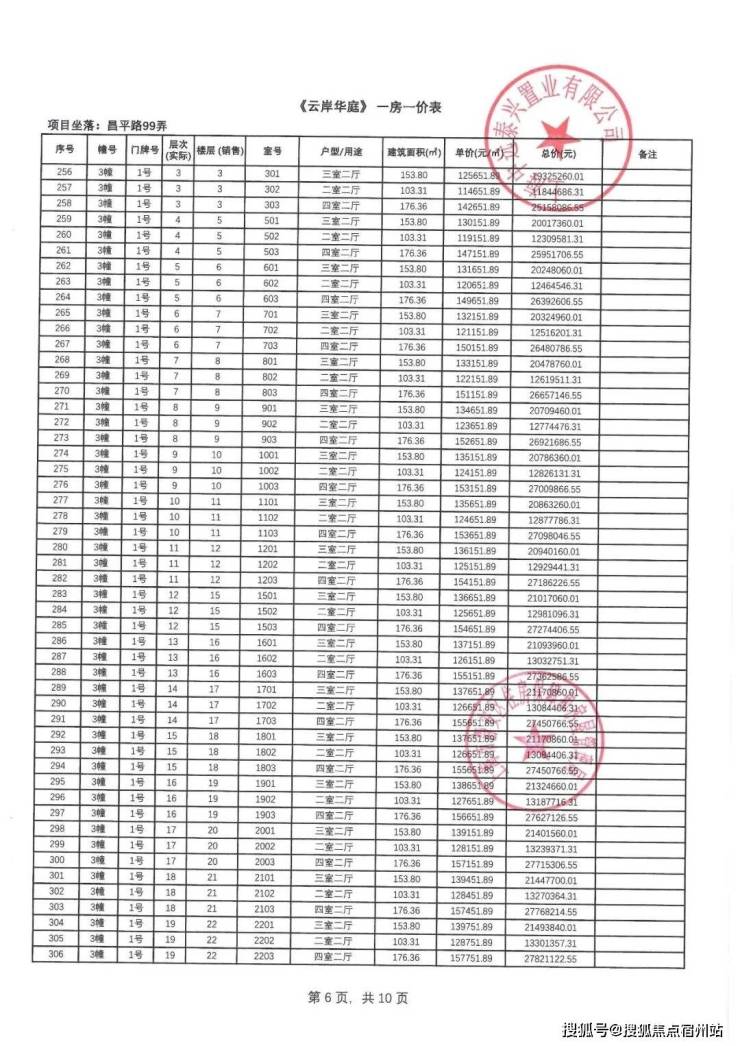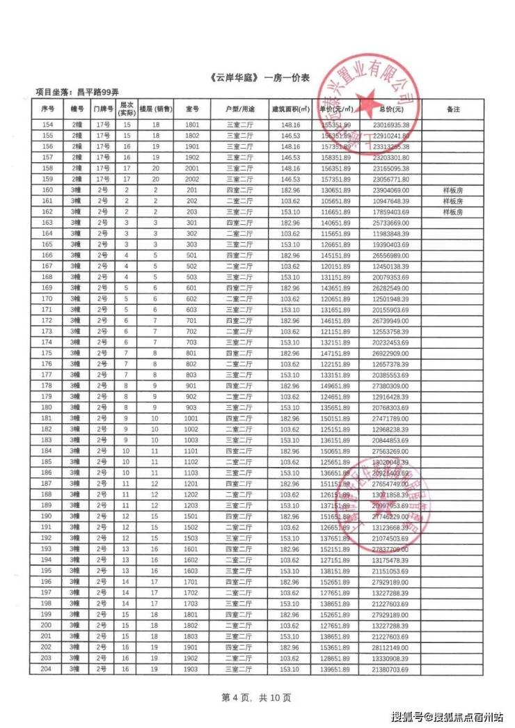 一房一价表