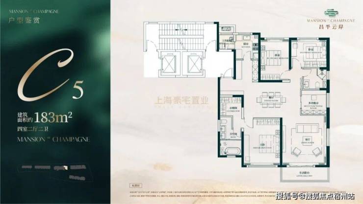 建面约183㎡4房2厅2卫户型