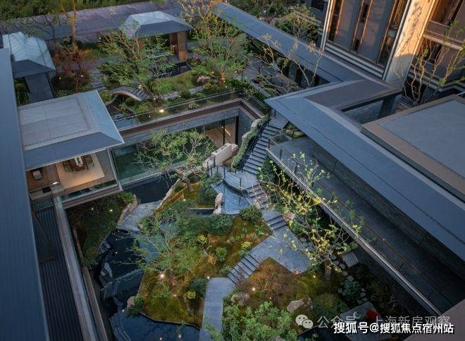 立体庭院,感受一步一景的山水画境 :风雨连廊漫步,耳畔是流水淙淙,眼前是叠石苍松。约460㎡下沉庭院不像景观,更像一幅您就在其中的立体宋画,一草一木,都可触摸、可对话。