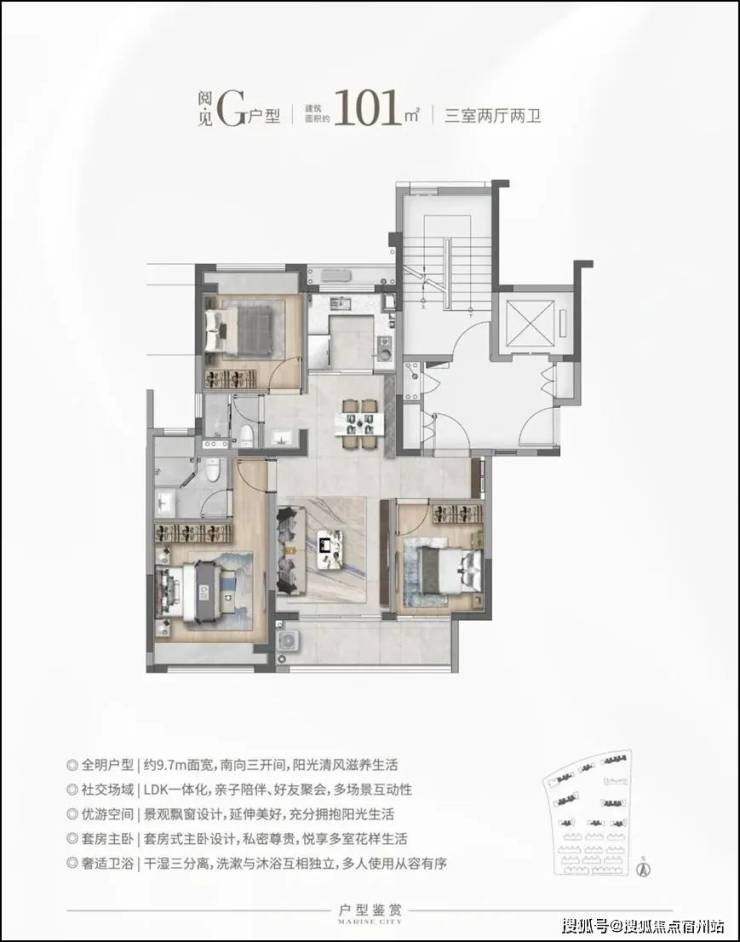 特别是这个 E户型,建面仅约90㎡,对于想住叠加但预算有限的购房者来说,面宽约6.45米,上下动静分离带,是个不错的选择!