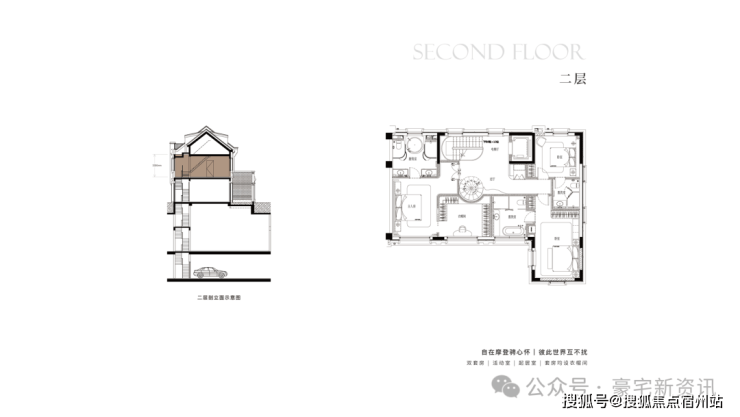 地下1F志趣空间,约7.2m层高,私人菁英社交圈层。首层花园入户,大横厅会晤场域,与时代精神际会。二三层静谧于心,起居室多套房设计,梧桐下的栖心之所。屋顶露台、花园庭院,超大附赠面积,藏身心于天地恢弘。