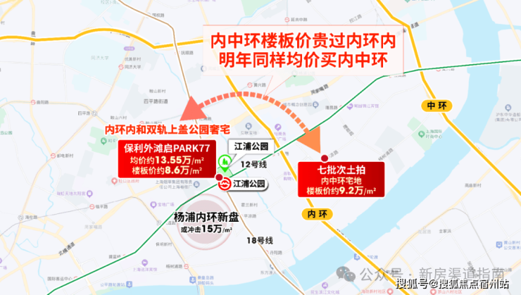 其一,七批次土拍,杨浦内中环宅地楼板价高达约9.2万/㎡,已高过内环内的保利外滩启PARK77(楼板价约8.6万/㎡)。