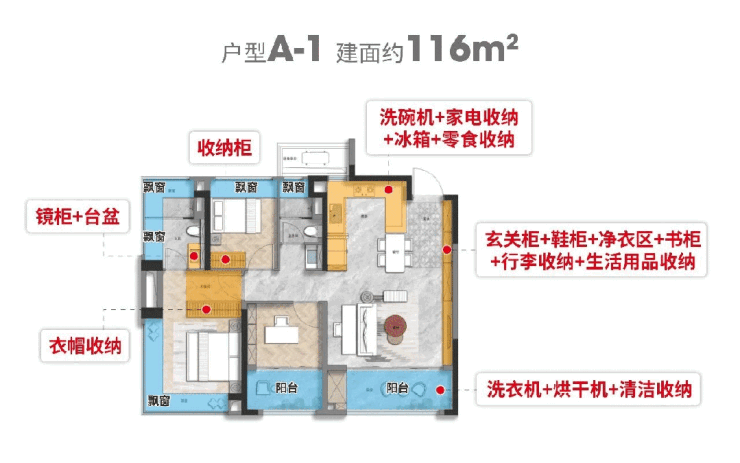 比如建面约116㎡户型:
