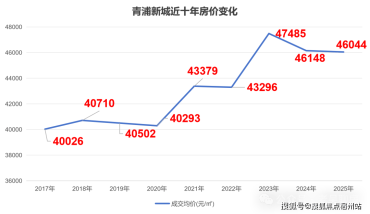 据克而瑞数据统计,青浦新城2017年房价就已经达到4万/㎡,最近两年更是涨到了4.6万/㎡。