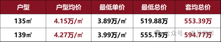 另外,建面约135㎡和建面约139㎡这两个户型的均价也仅约4.2万/㎡,相较与目前青浦新城的新房均价,也足足低了大约4000元/㎡;