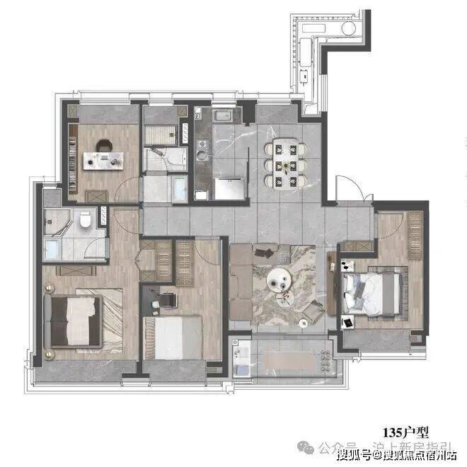 建面约135㎡4房2厅2卫户型图: