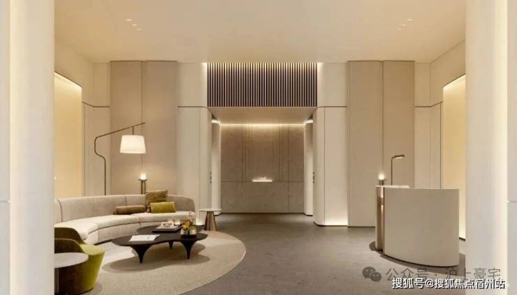 比起中规中矩的直线,弧形施工工艺更复杂、造价更高,却多了几分灵动轻盈!这种弧形的元素不只是在样板间里,在售楼处也能经常看到,比如电梯厅。