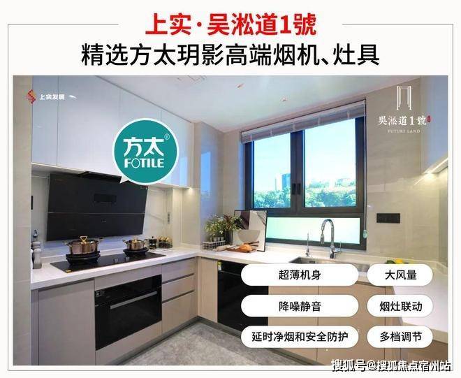 厨房配置方太高端玥影系列烟灶,✅✅上实吴淞道1號售楼处电话:400 - 8824 - 258✅✅搭配洗碗机、烘烤一体机,更有3M末端净水系统保障水质。