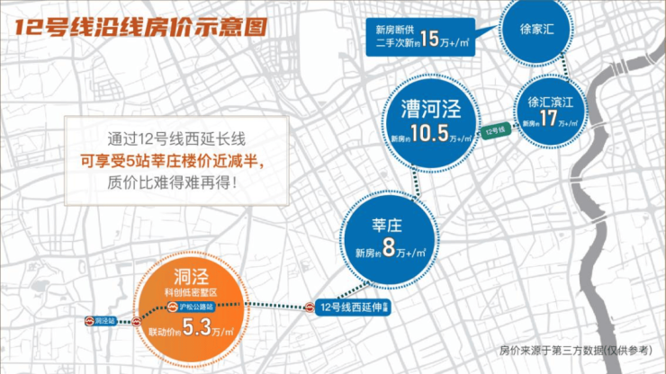 同样直达漕河泾、徐汇,总价相差近100万,这样的区别在于史诗级12号线延长线, 改变9号线“独铁难支”的局面