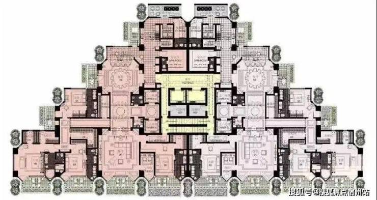 住宅部分全部大平层(复式)设计,单套面积约370-1500㎡,全部精装交付。