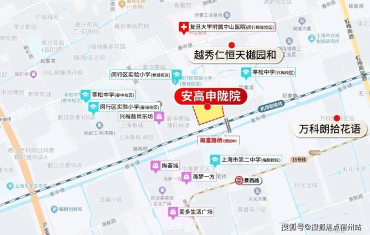 双轨交汇的高效通勤网络:项目距离 地铁15号线景西路站直线仅约 500米,步行即可轻松抵达;未来更有 在建的19号线穿梅陇而过,形成多轨交汇的立体交通网。通过15号线,可快速通达 紫竹科学园区(3站)、 徐汇滨江(6站)等城市核心CBD,通勤效率极高。