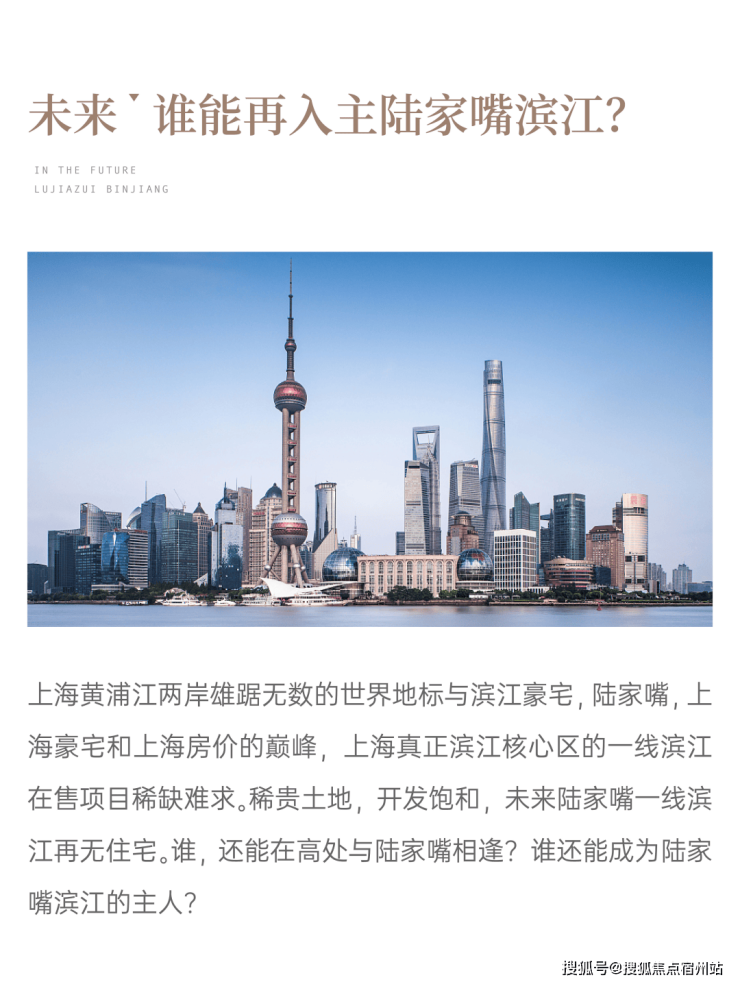 项目地处上海陆家嘴金融贸易区,近江约100米。陆家嘴被誉为中国的华尔街,更是上海的金融中心、经济中心和贸易中心,是全球金融中心,陆家嘴金融城,与纽约华尔街、伦敦金融城并称为世界三大金融中心,陆家嘴滨江,也成为并肩纽约中央公园、伦敦海德公园的顶级资本豪宅区,成为世界豪宅的中国封面。