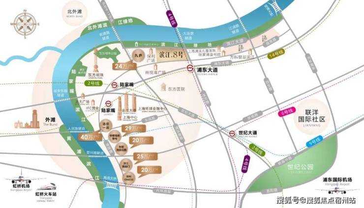 2KM国际商业圈:IFC国金、上海中心、正大广场、民生路太古里(在建)、浦东八佰伴、尚悦湾广场等国际知名商圈
