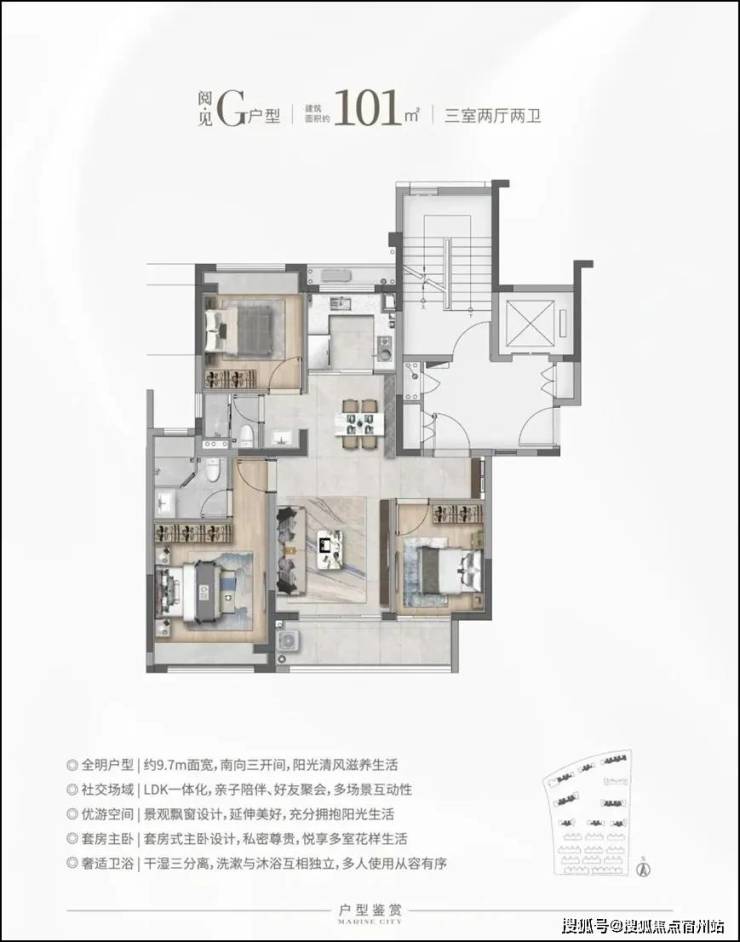 客餐厅厨一体化+大尺度观景阳台,整个公区几乎没✅✅ 华发海上都荟售楼处电话:400-9975-759✅✅有面积浪费,南北通透,同时三开间朝南,户型的采光和通风条件优越。