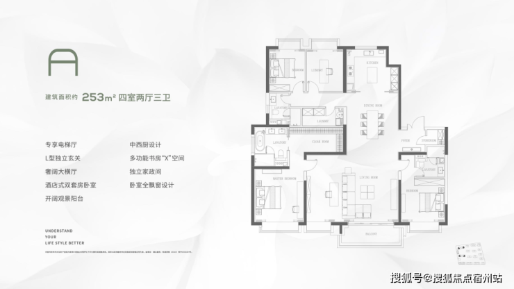 建面约253㎡的户型有几个重点: