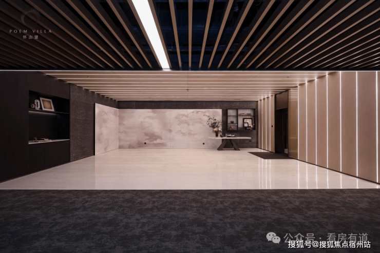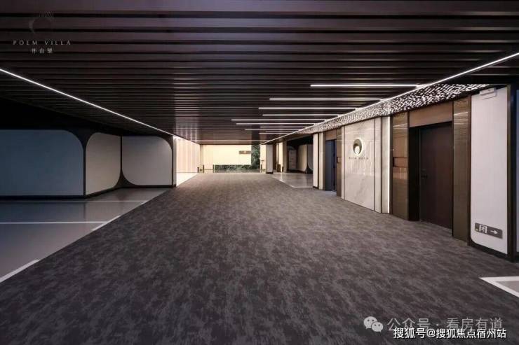地库以定制环氧地坪、不锈钢镂空星空顶与发光灯膜、石材内嵌墙面实现高定精装设计,打造 酒店式环岛·车马厅仪式·T台感车道 ,更通过地下入户光厅的金属饰面、仿石铝板及线条细节,让业主归家之路既有高级质感,也更有仪式感。