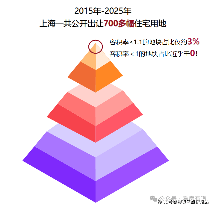 数据为证: 2015年至今,剔除掉金山和崇明,上海一共出让的 700多 幅住宅用地,这当中容积率低于1.1的地块占比仅约 3% 。