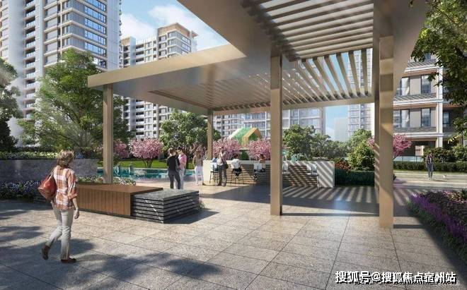 【风雨连廊】配备休闲座椅,为业主遮风挡雨,营造更加尊贵的生活体验.