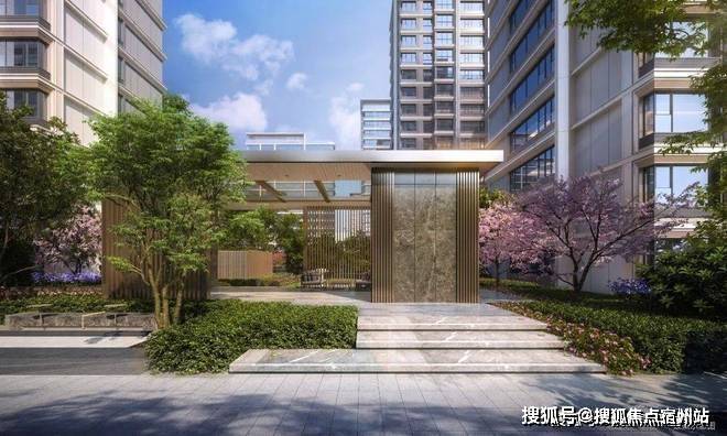 【北区入口】尺度大气的现代风格门头,入口展现艺术水苑、叠水瀑布以及层级绿化,彰显归家仪式感.