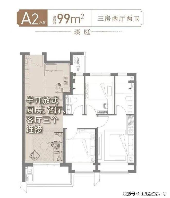 问题。厨房、餐厅、客厅三大空间联通,不仅通透感十足,还构建了一个利用率超高的家庭核心区,在这样高度开放的空间里,即使互不交流,也能保持交流和关注!