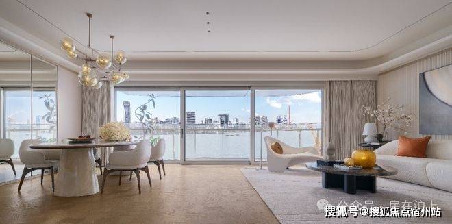 在功能空间的尺度上,整个客餐厅面积达到了约40㎡,双面采光空间奢阔,西面直面陆家嘴三件套,还能看江!主卧套房则拥有约30㎡大空间,足以媲美市面上建面约240㎡的产品。