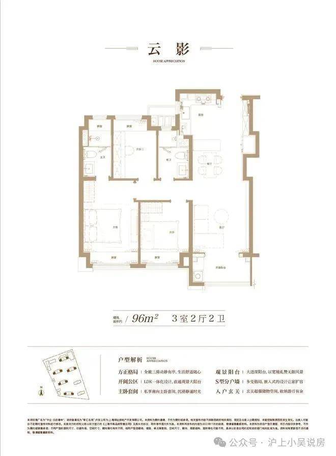 建面约96㎡,充分从居住者的角度考量生活动线、舒适度与生活感。 S型的分户墙,褪去呆板,为家具预留更多的空间; LDK一体化的设计打破空间局限,解锁更多的生活场景,也拉近家人间的距离;主卧套间自在独处,生活的优雅时刻尽显……