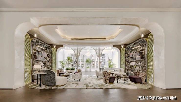 穿过光影流转的迎归大堂,直达艺境超群的莳花荟中央会客厅: