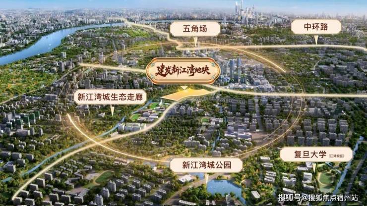 全新地块位于新江湾正芯,西临江湾城路,南接殷高东路,北贴在建的交大附中杨浦实验学校(在建);