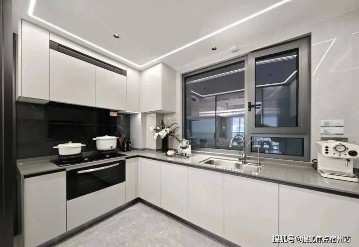 在细节上同样不遗余力。比如入户后的玄关柜是交付标准,打开厨房柜体、镜柜等各类收纳空间时均有惊喜;再如客厅和主卧均采用弧形吊顶,还有风暖浴霸、玄关顶面感应灯等细节,都透露出项目对品质生活的追求。