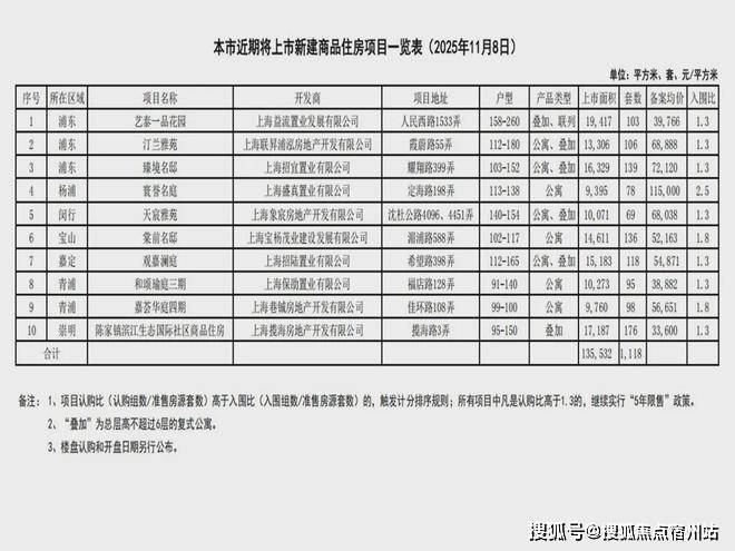11月8日,上海网上房地产官网公布了最新一批过会楼盘名单。名单显示,本次共有10个项目入市,总计推出房源1118套,总货值约77.57亿元,分布于浦东、杨浦、闵行、宝山、嘉定、青浦、崇明等多个区域。