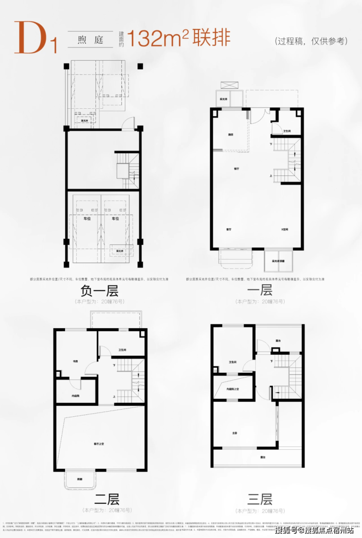 建面约132㎡的D1户型(联排)。乍一看,这是一个地下一层,地上三层的标准联排户型,从户型图上只能看到两个卧室。但仔细看的话,会发现许多令人惊喜的亮点~