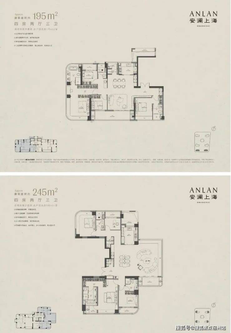 建面约195㎡户型 总价2700-3400万 单价13.8-17.5万/㎡