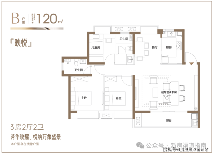 建面约120㎡改善3房:6.3米阔绰横厅