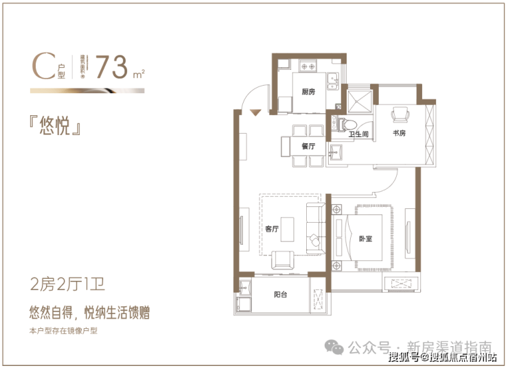 建面约73㎡悠然两房:悦纳生活馈赠