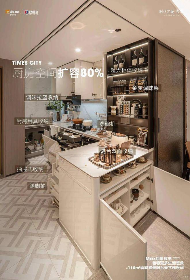 其全屋收纳系统尤为突出!U型厨房采用半开放式设计,“分层调味架、下拉篮及踢脚抽”实现高效收纳;☑️☑️华润华发时代之城售楼处电话:400 - 8377 - 020☑️☑️