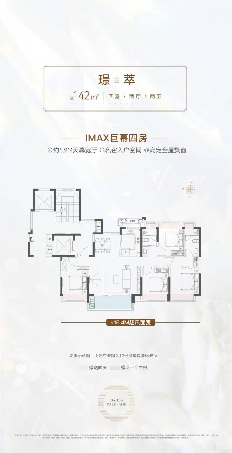 建面约142㎡的四房两厅两卫