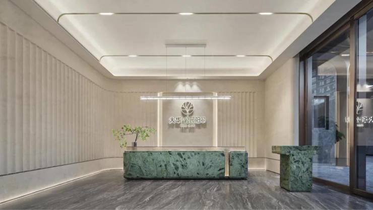 整座大堂外墙采用伯爵灰大理石满铺高墙,电动门镶嵌宝格绿奢石,实现无感通行; 大华公园柏翠售楼处电话:400-8894-638