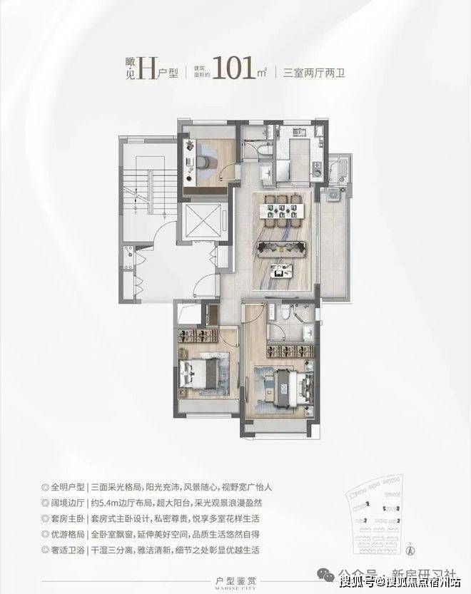 ③建面约101㎡H户型: