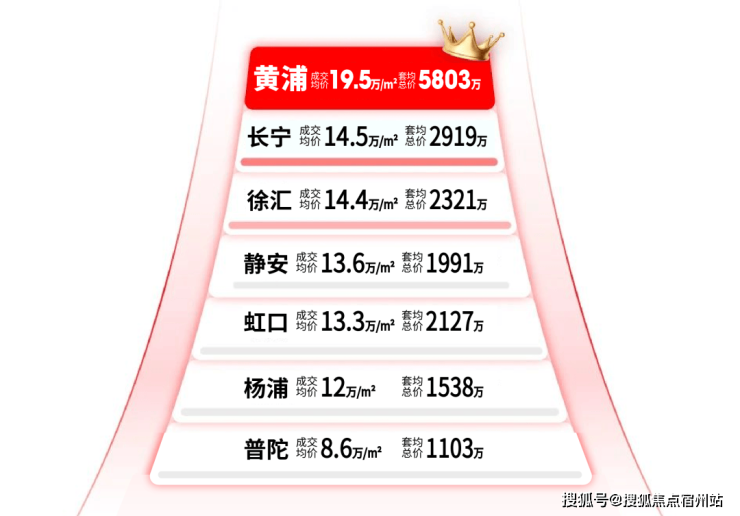 而相比这些区域,地段更加核心、圈层更加统一、资源更高能级的黄浦区中部,则将是20万/㎡+的市场。