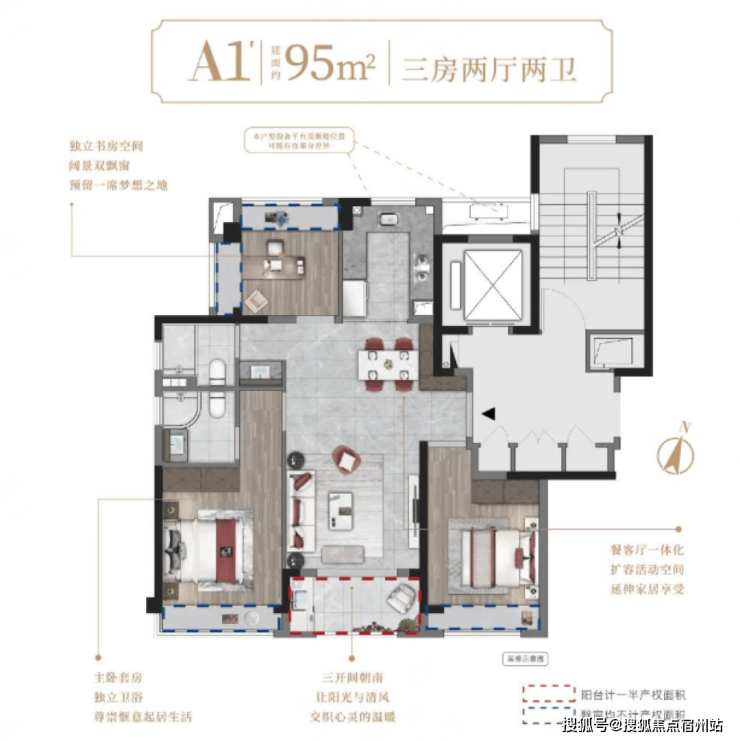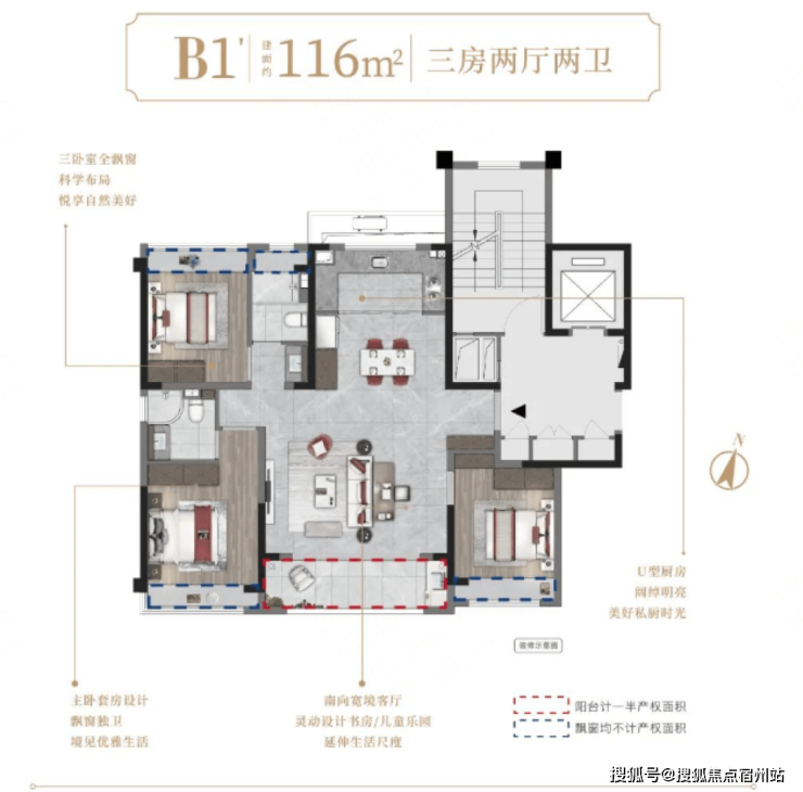 建面约95/116㎡精装3房