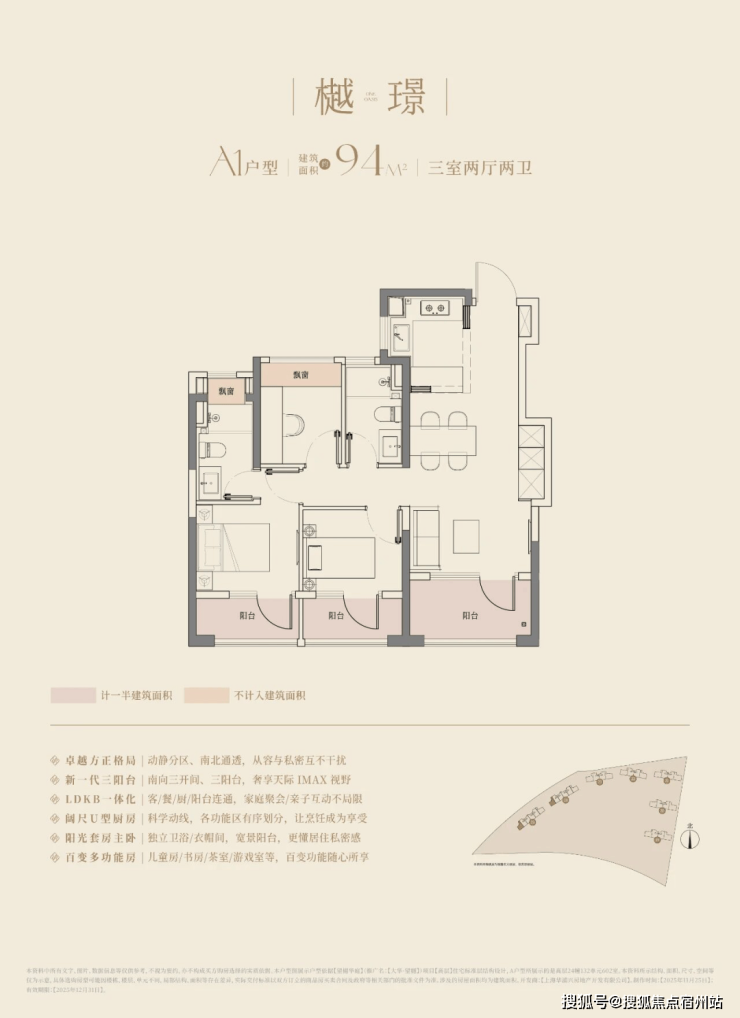 在这里,高层建面约94㎡户型做到了惊人的 三阳台, 对比同板块内以前的标杆小区,同面积段户型只做了1个阳台。不仅数量发生质的变化, 实得面积 也大大增加。