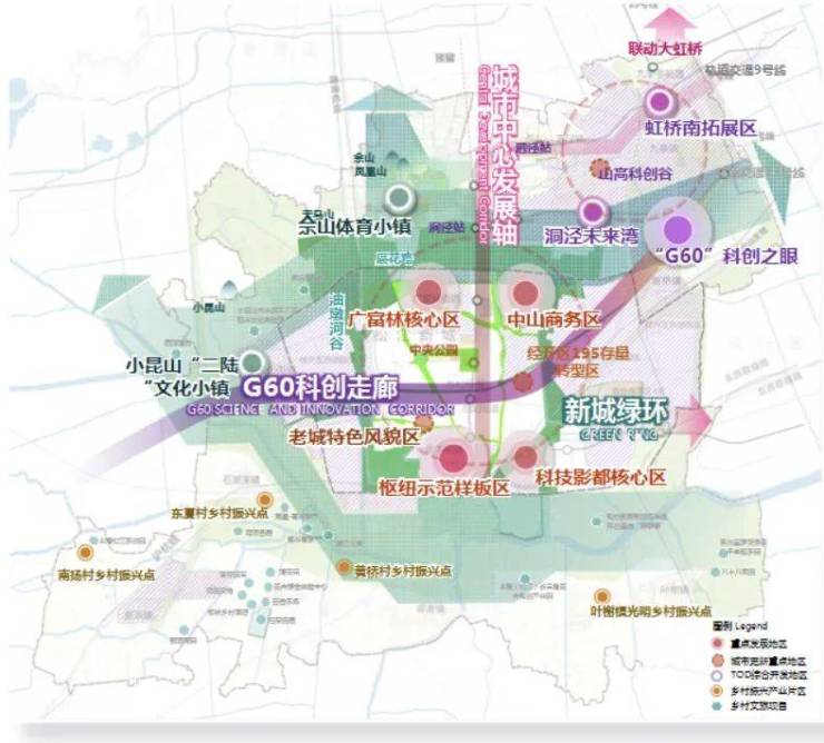 松江新城,为五大新城之首,2035卓越上海的核心能级,规划约110万人口,人口和用地规模位居上海五大新城前列,成为“上海都市圈第一圈层”主力城市。