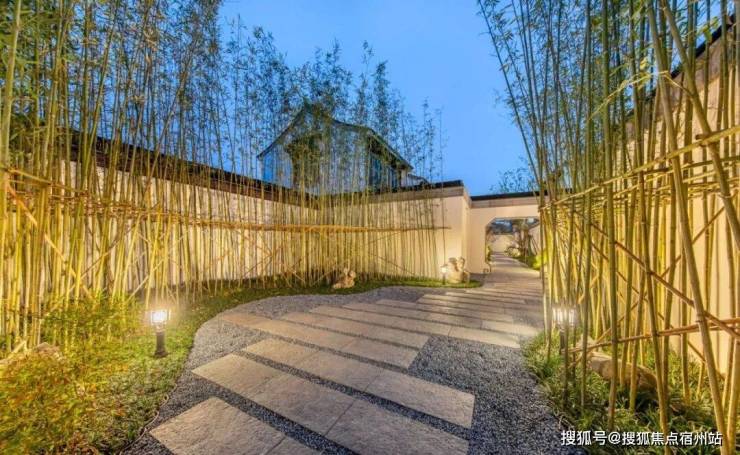 经过中心园林之后,就是通往“家”的江南巷道。白色的墙、翠绿的竹,阳光投射下来与竹林形成影影绰绰的光斑投射在墙面,美不胜收。