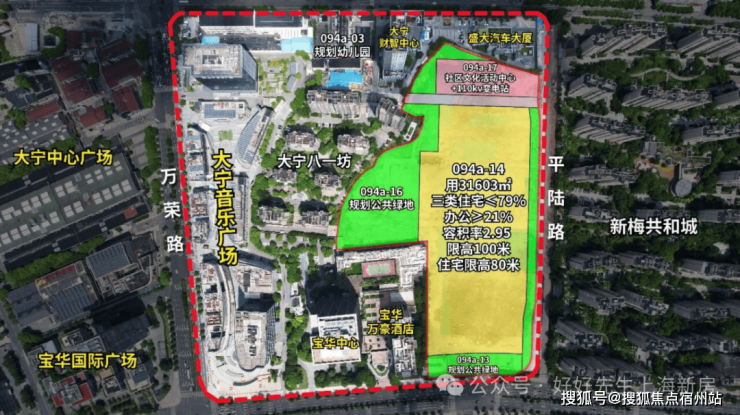 该项目位于大宁公园北侧、东临新梅共和城,占地面积约31603㎡,容积率2.95,限高100米(住宅高度不超高80米),计容面积约93229㎡,其中住宅占比≤79%,办公占比≥21%。