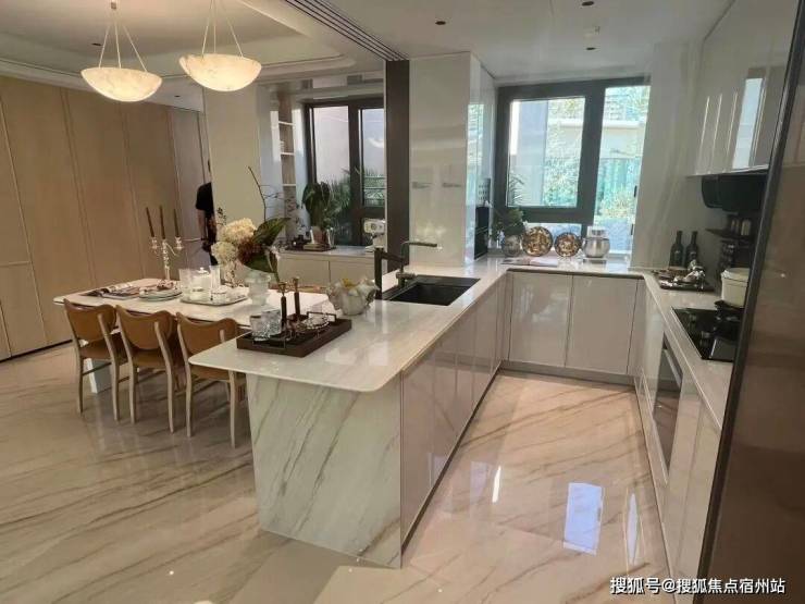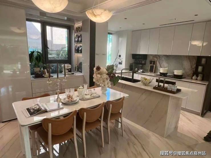 餐厅南北通透设计,带个岛台和采光飘窗,想象一下,在这里吃饭都更有仪式感了。